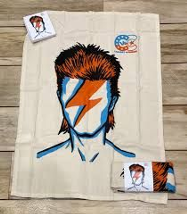 1. Bowie Face - full colour printed on 100% white cotton tea towel